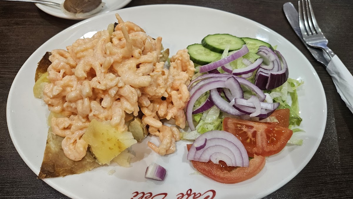 Nice traditional cafe with good, quick service, clean and comfortable inside. Well cooked food for a reasonable price. It would be nice to see sautéed potatoes added to the menu.