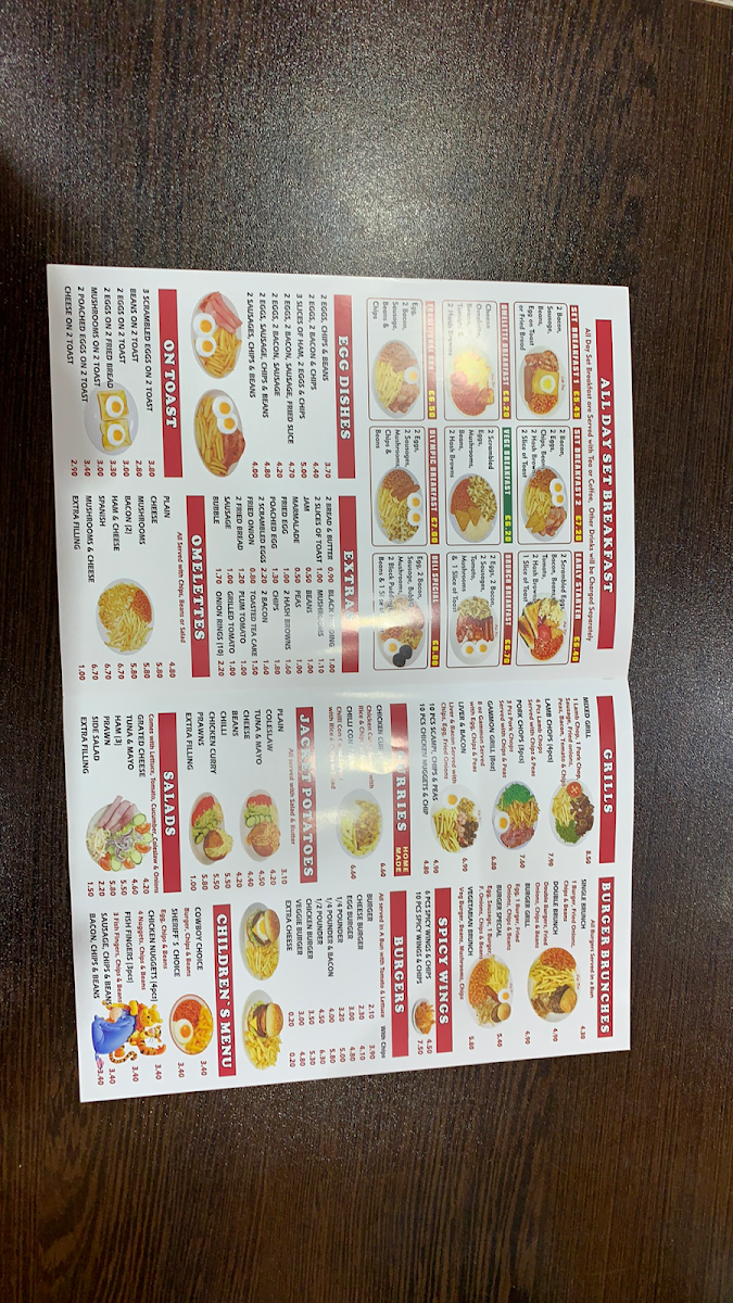 Start your morning with options like an English Breakfast or Black Pudding Bacon Scrambled Eggs, paired with a freshly brewed cappuccino or latte. For lunch, the menu includes satisfying jacket potatoes with a variety of fillings, crisp salads, and casual bites such as prawn cocktail or sausage with chips and mushrooms. The presence of dishes like Huevos Rancheros and Montaditos adds a subtle twist for those seeking something a little different without overcomplicating the menu.